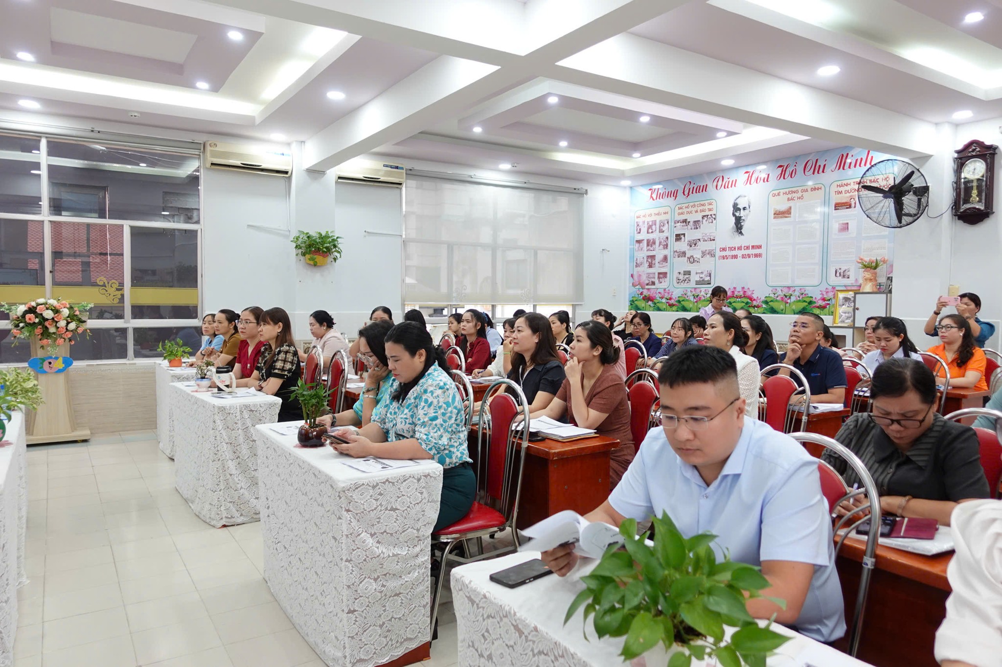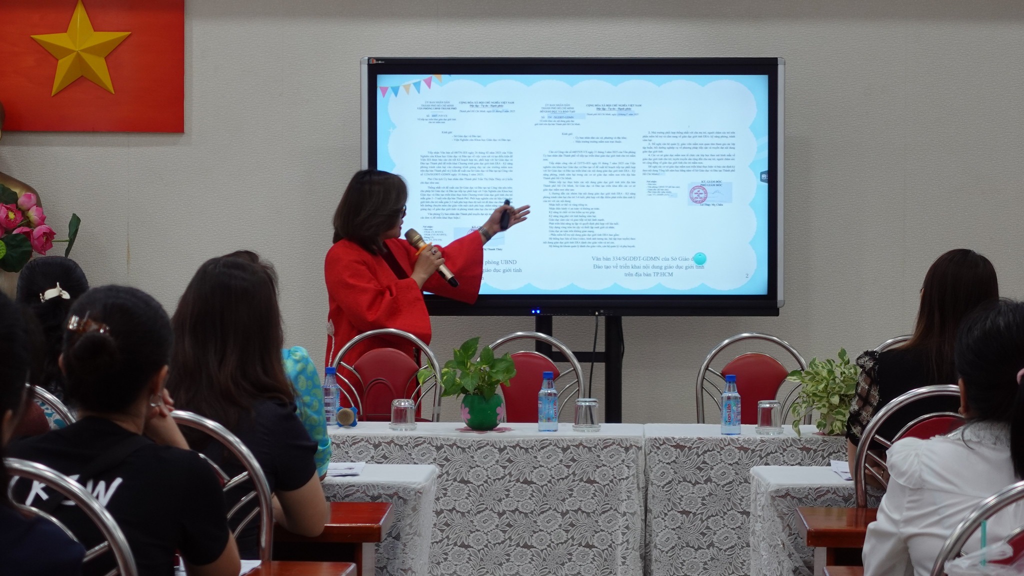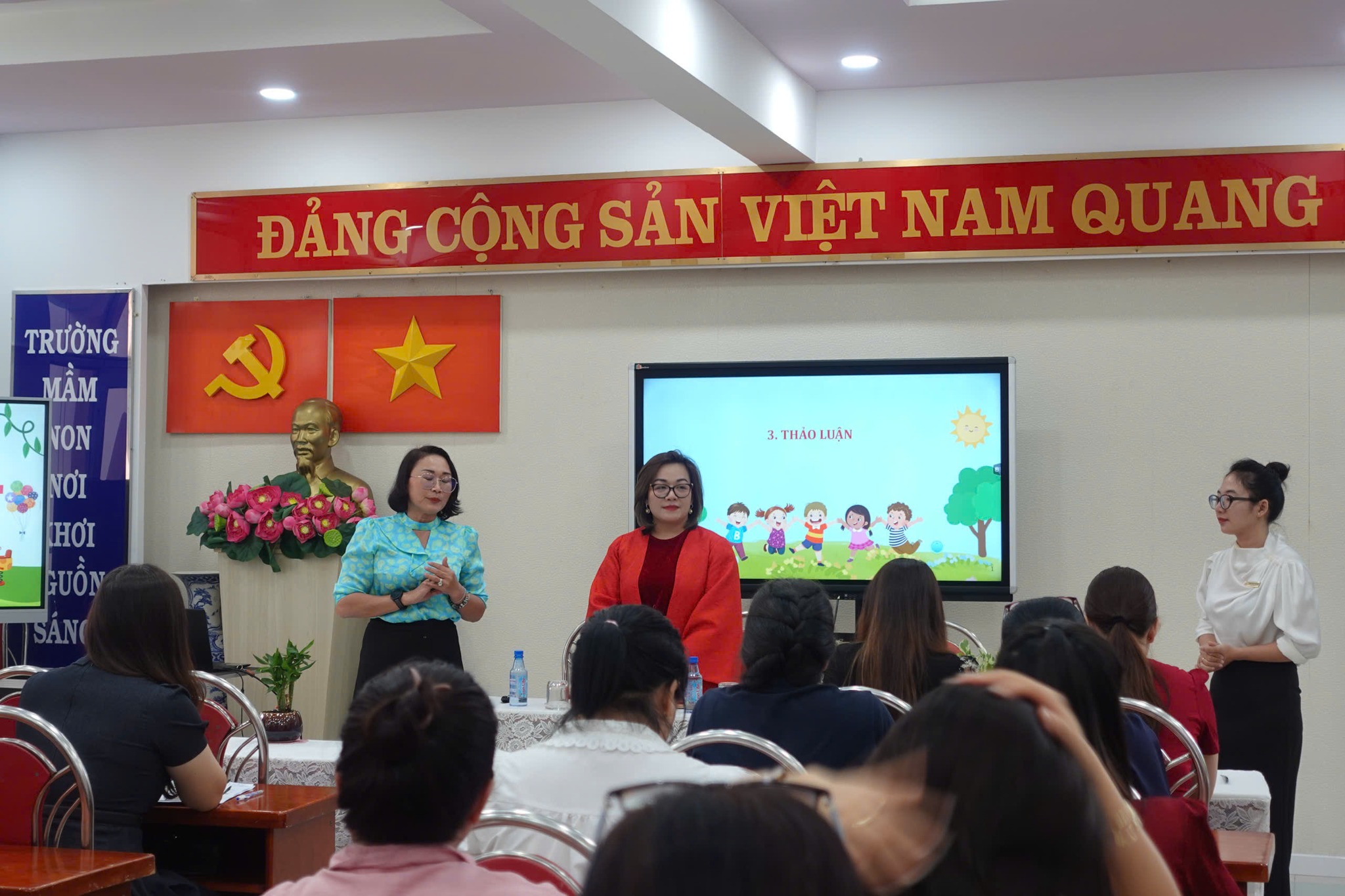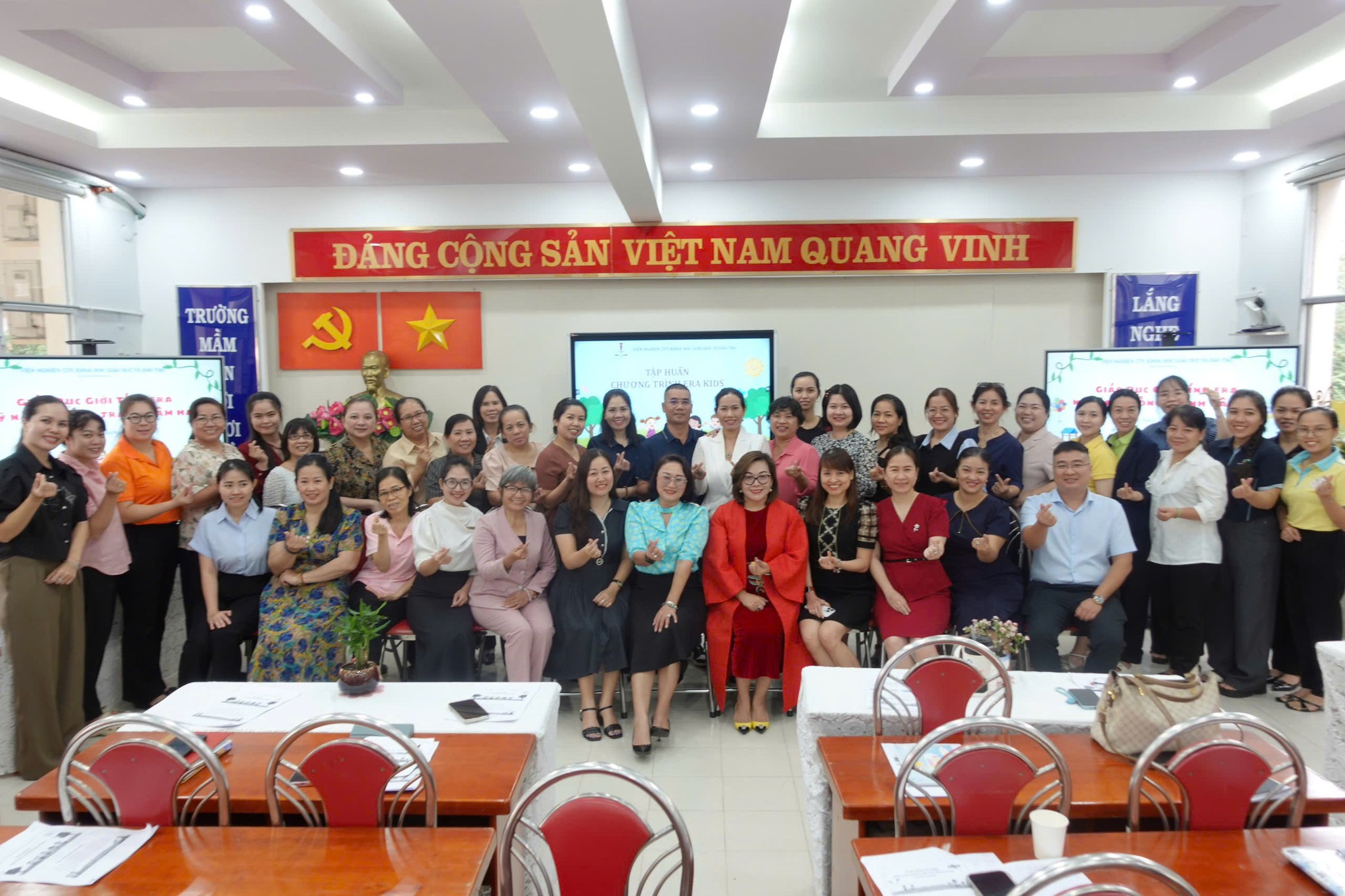 Tại Trường Mầm non 30/4, Viện Nghiên cứu Khoa học Giáo dục và Đào tạo đã tổ chức buổi tập huấn chương trình “Giáo dục giới tính ERA – Kỹ năng phòng tránh xâm hại cho trẻ 3–5 tuổi” dành cho chuyên viên Phòng Văn hóa – Xã hội; Hiệu trưởng, Phó Hiệu trưởng, chủ nhóm lớp và giáo viên mầm non tại các phường Bến Thành, Cầu Ông Lãnh, Sài Gòn và Tân Định.